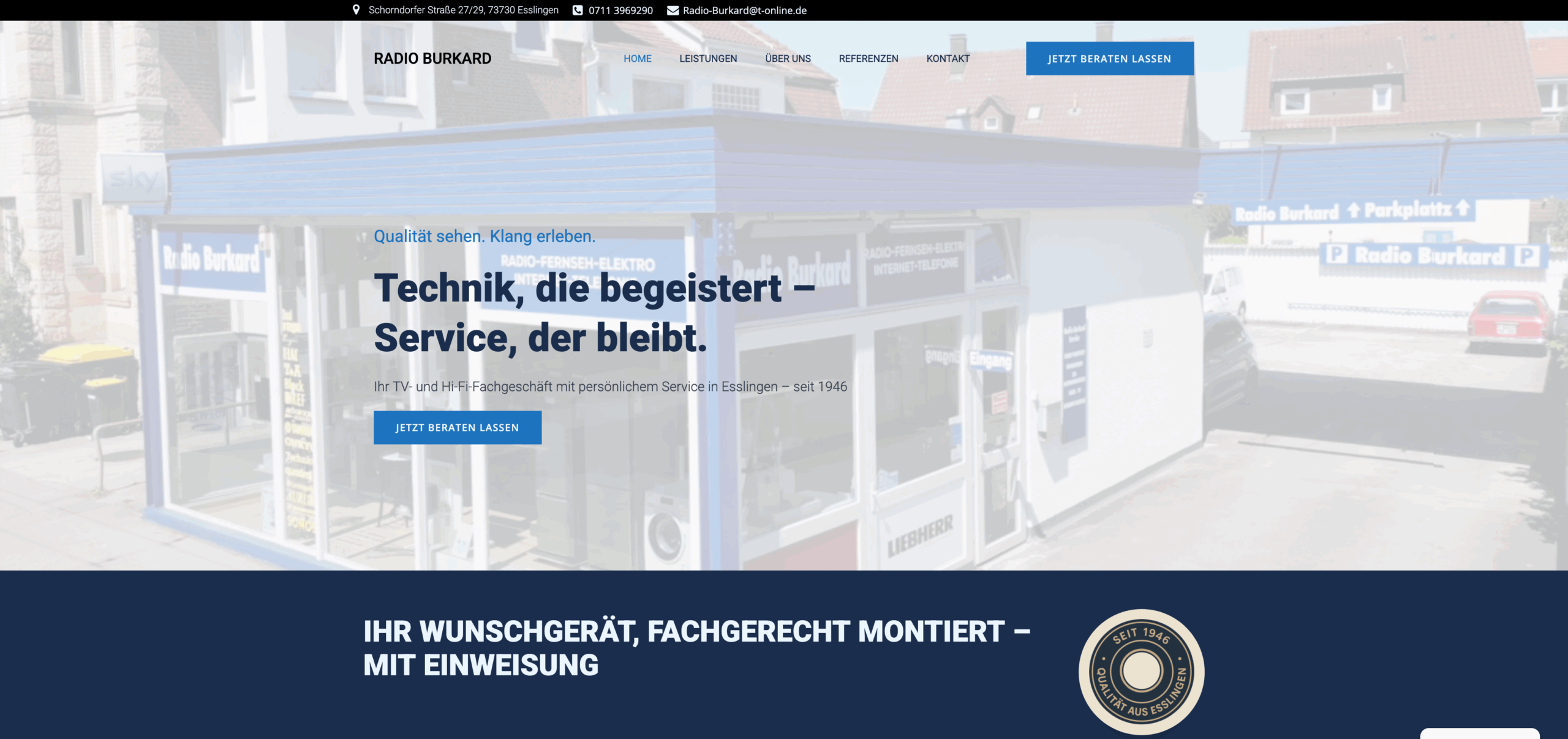Mit der neuen Website hat Radio-Burkard den Schritt von einer überholten Online-Visitenkarte hin zu einem modernen digitalen Schaufenster geschafft, das nicht nur informiert, sondern aktiv Kunden generiert.
